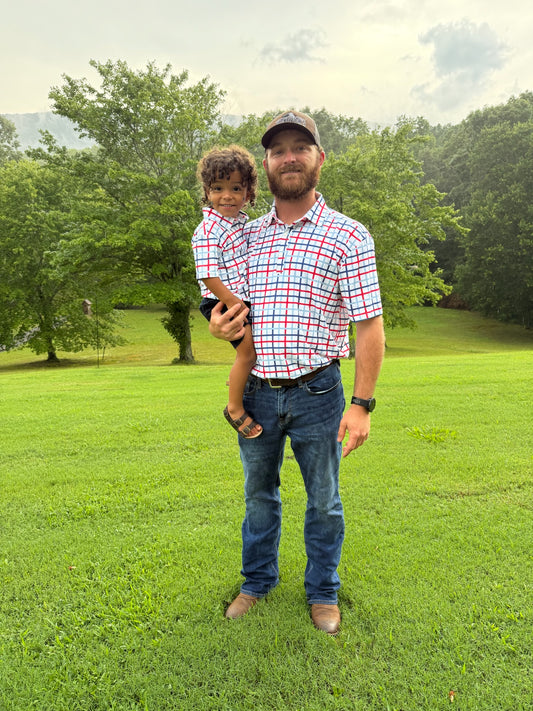 Red, White & Blue Boys Polo ETA early June